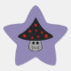 A cute vampire mushroom, with a black cap, red spots, and tiny fungal fangs.