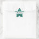 Um conjunto de adesivos estrelados de "Obrigado" de um nó celta azul-esverdeado repetia design de azulejo de diamante contra um fundo preto. Ou personalize "Obrigado" com sua própria mensagem! Também disponível em outras formas!