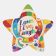 Um design vibrante celebrando amor, riso e vida. Apresentando tipografia divertida e ilustrações alegres, ela serve como um lembrete alegre de abraçar cada momento e espalhar positividade. Perfeito para qualquer espaço! "A Imagem Original foi gerada pelo Meta AI. A IA gerou trabalho de arte. Licenciado sob CC BY-SA 4.0.