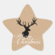 Os autocolantes de Natal com uma aparência natural e simples apresentam um papel kraft bronzeado, com um fundo de olhos com busto de veados preto e texto cursivo branco que lê Feliz Natal!