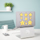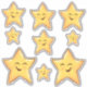 Conjunto de nove estrelas amarelas felizes, cada uma com um rosto sorridente.