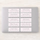 Fácil de personalizar, nomes e endereços / etiquetas de endereço de casamento individuais para convidados. Essas etiquetas chic, modernas e simples de endereços de casamento mostram seus nomes de convidados de casamento em tipografia moderna elegante fora de preto em um fundo púrpura pastel. Basta adicionar os nomes e endereços dos convidados do casamento. Desenvolvido exclusivamente para você pelo Happy Dolphin Studio. Se precisar de ajuda ou produtos correspondentes, entre em contato conosco em happydolphinstudio@outlook.com. Estamos felizes em ajudá-lo a fazer seu casamento o dia mais bonito!