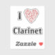 Exiba seu amor pela música e pelo clarinete com esses adesivos legais de Eu Coração música! Um ótimo presente para professores de música, músicos ou estudantes de música! O coração é feito de claves de sol, claves de fá e várias notas de ritmo musical, todos na forma de um coração vermelho. Mantenha o texto como está ou personalize para refletir qual instrumento musical, grupo ou conjunto você ama!