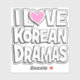 Você é viciado em dramas coreanos como eu? Então você tem certeza de curtir este design de texto I Love Coreano Dramas com letras ousadas e um sotaque cardíaco rosa. É excelente em adesivos personalizados fofinhos para qualquer fã do K-Drama! Personalize-o da forma que você quiser. Faça qualquer coisa para mostrar seu amor por K-Dramas!