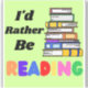 Eu preferiria estar lendo. Com letras coloridas, em verde, e uma pilha de livros!