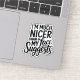 Não deixe seu rosto de descansar te enganar! Este adesivo engraçado e relacionado proclama, "Sou muito mais agradável do que a minha cara sugere." Perfeito para aqueles com senso de humor seco ou que apenas têm uma dessas faces. Feito com vinil durável, este adesivo é excelente para laptop, garrafas de água, notebooks e muito mais. Deixe sua personalidade brilhar com este adesivo honesto e alegre.