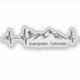 A mountain biking themed heartbeat sticker noting a popular location to mountain bike of Evergreen, Colorado