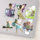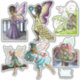 Seis fadas adoráveis em poses bonitas com a palavra "Mundo Fada" para um adesivo também.