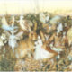 Sticker com a pintura de John Anster Fitzgerald's (1819-1906) Fairy Twilight. Fadas brancas cercam um coelho marrom em um campo verde. Um presente fabuloso para amantes de contos de fadas e colecionadores de arte vitorianos!
