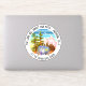 Christian Proverbs 3 Summer Camping Van Life Sticker com TEXT PERSONALIZÁVEL, mostrando montanhas alpinas, árvores florestais e uma caravana de campismo, com um pôr do sol antigo ao fundo. O texto curvo lê O SENHOR DIRIGIRÁ NOSSO CAMINHO - PROVERBS 3:5-6, que é baseado no verso da Bíblia cristã que começa com CONFIANÇA NO SENHOR COM TODO O SEU CORAÇÃO. O texto de baixo diz DEIXE AS AVENTURAS COMEÇAREM! TODO O TEXTO É PERSONALIZÁVEL, para que você possa personalizar com seu texto preferido ou adicionar seu(s) nome(s) de família. Isso seria ideal para uma vida de van, uma viagem de verão no exterior, ou para aqueles que buscam uma vida mais simples na estrada. Presentes correspondentes disponíveis.