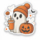 Adesivo Fantasma Bonita do Halloween com Abóbora e Beba