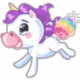 Vinheta vinil cortada em contorno de um unicórnio kawaii que peidava uma nuvem de gás arco-íris
