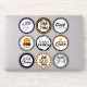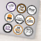 Adicione charme assustador com esta folha de adesivos de vinil divertida de Halloween com 9 designs de tipografia em preto e branco, laranja e roxo - perfeita para favores de festa de Halloween, selos de envelope e decorações festivas para celebrações de doces ou travessuras.
