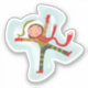 Um gráfico vetorial, fofo, de uma menina fazer anjo de neve na neve. Ela está vestindo dois tons de calças listradas verdes com um topo verde e laranja correspondente. Ela também veste vermelho, luvas de tricô, um chapéu e cachecol. Ela tem um sorriso bonito com bochechas rosadas porque ela está feliz na neve. Faz um toque perfeito para suas cartas ou favoritos para festas.