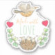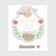 Arte original de um pássaro feliz voando alto sobre folhas cardíacas brancas em volta do ninho de seus filhotes! Personalize o texto para dizer o que quiser!