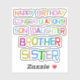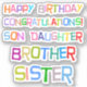 texto colorido lendo: "Parabéns" "Parabéns!" "Filho" "Filha" "Irmão" "Irmã"