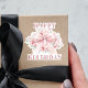 Um arco rosa sobre flores cor-de-rosa, rosas. Texto: Parabéns