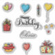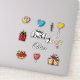 Celebre com estilo com este divertido e festivo pacote de adesivos de aniversário! Esta coleção apresenta ilustrações em estilo desenhado à mão de elementos clássicos de aniversário, incluindo balões coloridos em forma de coração e estrela, presentes lindamente embrulhados e velas alegres. O design também inclui a frase "Feliz Aniversário", tornando-o perfeito para cartões, decorações e lembrancinhas de festa. Além disso, personalize suas celebrações adicionando facilmente um nome para criar um toque verdadeiramente único! Estes adesivos vibrantes são ideais para adicionar um elemento alegre e pessoal a qualquer celebração de aniversário.