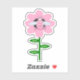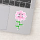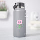 Este incrível adesivo apresenta uma imagem gráfica de um mamangabo rosa giro com listras rosa brilhantes, olhos pretos, antenas cor-de-rosa e pernas pretas. Tem asas bonito, azuis e brancas. A abelha está sentada no meio de um girassol rosa bonito. A flor tem um caule verde e três folhas. A mensagem "Bee Day Girl" aparece espalhada sobre as três folhas. O fundo é composto por um padrão rosa brilhante de mel.