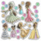 7 princesas Afro-Americanas com vinhetas de flores de cor diferente para uma garota especial.