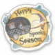 Adesivo de Camping de Bruxa de Halloween - Celebre o Halloween com um toque divertido: uma bruxa puxando uma van camper sob a frase Feliz Temporada Assustadora. Uma mistura caprichosa de magia e viagem, perfeita para os amantes da temporada assustadora e aventureiros de coração.