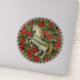 Pintura do Unicórnio de Natal com flores vermelhas de poinsettia, galhos e folhas verdes sobre fundo escuro.