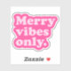 Festivo e divertido, este adesivo retrorado "Apenas Víblias de Feliz" é o toque perfeito de feriado. Uma reprodução sazonal em "apenas boas vibrações", ela apresenta um tipo de estilo de devolução e cores rosa-quente modernas. Faz um excelente ou adolescente estocando.