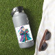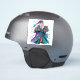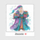Uma figura alegre revestida de vibrantes roupões violetas e azuis, adornada com designs intrincados, contém presentes coloridos envoltos com arcos. A atmosfera festiva é reforçada por fitas giratórias e ornamentos espumantes, incorporando o espírito alegre do Natal.