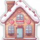 Casa de pão de gengibre adorável com corações e decorações festivas de neve.