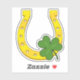 Adesivo Ferradura de Ouro Sortudo com Shamrock em Branco