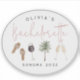 Comece a festa com esses adesivos de vinil personalizados fofos que são fáceis de personalizar para a sua festa de despedida de solteira, noite de hen ou fim de semana das meninas! O design boêmio no estilo do país do vinho apresenta ilustrações delicadas em aquarela de sandálias, uma palmeira, taças de champanhe e vinho tinto com letras em rosa poeira. Personalize com três linhas de texto personalizado; mostrado com o nome da noiva, tipo de evento, local e data.