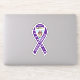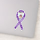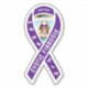 Mostre apoio para um pequeno combate à fibrose quística com este adesivo de reconhecimento de fita roxo. Design apresenta o símbolo de fita roxo com a foto da criança no centro e o texto branco personalizável no alto e no loop frontal da fita. Mostrada com o nome da criança e "fibrose quística". O outro loop da fita é adornado com pequenas borboletas brancas.