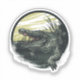 A bold wildlife illustration featuring a fierce alligator emerging from a dark swamp environment with its jaws wide open. Detailed scales, sharp teeth, and powerful claws create an intense focal point, while tall reeds and murky water enhance the untamed wilderness atmosphere. The dramatic contrast between the dark greens and pale yellow sky adds depth, giving the artwork a gritty graphic novel and tattoo-inspired aesthetic full of raw energy.