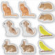 Esta folha de adesivos de animais fofos, projetada pela Destei, apresenta uma coleção de ilustrações de animais de estimação fofos, incluindo um cachorrinho marrom e branco, um gato laranja, um periquito amarelo, um hamster marrom e um coelho marrom. Cada animal aparece duas vezes na folha, criando um conjunto de adesivos que destacam uma variedade de animais de estimação queridos.