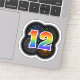 Este design de adesivo divertido e excitante apresenta um padrão de fogos de artifício celebratórios coloridos, inspirado no espetáculo, juntamente com o número "12", que inclui um espectro multicolorido como o arco-íris ou um padrão de gradiente. Um adesivo excitante como este pode ser divertido de usar ao comemorar o décimo segundo aniversário de alguém, ou talvez o décimo segundo aniversário de casamento de um casal, ou outro evento de 12. [~Z0000362]
