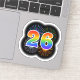 Este design de adesivo vibrante e divertido apresenta um padrão inspirado em fogos de artifício celebratórios coloridos, junto com o número "26", tendo um espectro multicolorido como o arco-íris ou padrão de gradiente. Um autocolante como este pode ser usado para celebrar o vigésimo sexto aniversário de alguém, ou talvez o vigésimo sexto aniversário de casamento de um casal, ou qualquer outro 26º evento. [~Z0000362]