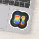 Este design de adesivo vibrante e divertido apresenta um padrão colorido inspirado em fogos de artifício comemorativos que explodem, juntamente com o número "51" que inclui um espectro multicolorido inspirado no arco-íris ou um padrão de gradiente. Um autocolante excitante como este talvez possa ser usado para celebrar o cinquenta primeiro aniversário de alguém, ou talvez o cinquenta primeiro aniversário de casamento de um casal, ou qualquer outro evento de 51 ruas. [~Z0000362]
