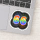 Este design divertido e excitante adesivo apresenta um padrão de fogos de artifício celebratórios coloridos, inspirado no espetáculo, juntamente com o número "66", que inclui um espectro multicolorido como o arco-íris ou um padrão de gradiente. Um adesivo divertido como este pode ser usado para celebrar o sexagésimo sexto aniversário de alguém, ou talvez o sexagésimo sexto aniversário de casamento de um casal, ou qualquer outro evento do 66º aniversário. [~Z0000362]