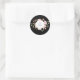 Adesivo personalizável enquadrado com um intrincado design floral cor-de-rosa sobre um fundo preto.
