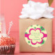 Um adesivo adorável para colocar em qualquer lugar. Flores azuis decoram o fundo creme. Uma flor magenta grande tem seu nome personalizável ou qualquer mensagem que você quiser. Disponível em cores alternativas com cartões de nota e postagem correspondentes.
