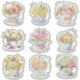 Este pacote de 12 adesivos apresenta ilustrações de aquarela de gráficos florais de teacup.