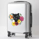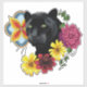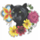 Um retrato de gato Jaguar Negro com azulejo mexicano colorido e flores.