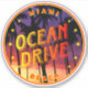 Ocean Drive Miami, Flórida, adesivo de Miami Ocean Drive com pôr do sol e palmeiras, em forma arredondada. Ocean Drive, praia tropical de verão, vibra palmeiras. Cidades da Coleção da Flórida