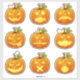 Folha de palitos de abóbora esculpida - Lanternas do Dia das Bruxas | Dê vida ao espírito do Dia das Bruxas com esta folha adesiva de abóbora esculpida com 9 designs diferentes de balas. Cada abóbora apresenta uma expressão única, de assustadora e assustadora a divertida e divertida, perfeita para decorar favoritos para festas, tratar bolsas, notebooks e muito mais. Estes vinílicos vibrantes são fáceis de descascar e colar, duráveis, impermeáveis e ideais para uso interno e externo. Estes adesivos de abóbora divertidos e versáteis vão adicionar um toque festivo ao seu decor de Halloween!