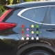 Esta folha de autocolante apresenta-se em várias cores: vermelho, azul, amarelo, verde, castanho, rosa, roxo, preto e branco. 2 autocolantes vermelhos 2 autocolantes azuis 2 autocolantes amarelos 2 autocolantes verdes 2 autocolantes castanhos 2 autocolantes cor-de-rosa 2 autocolantes roxos 2 autocolantes roxos 2 autocolantes pretos 4 autocolantes brancos