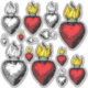 Um gráfico cardíaco sagrado vermelho, ousado, flamejante em uma seleção de autocolantes duráveis. Cada folha de 8" x 8" contém autocolantes cardíacos em preto e branco e vermelho, amarelo e azul. Disponível na sua escolha de cor de fundo branca ou transparente em vários tamanhos. Adicione o seu próprio texto para tornar estes autocolantes verdadeiramente um dos tipos. Personalize o seu laptop, garrafa d'água, baralho de skate ou praticamente qualquer coisa com estes decalques cardíacos sagrados e duradouros.