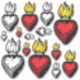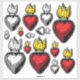 Um gráfico cardíaco sagrado vermelho, ousado, flamejante em uma seleção de autocolantes duráveis. Cada folha de 14" x 14" contém adesivos cardíacos vintage em preto e branco e vermelho, amarelo e azul. Disponível na sua escolha de cor de fundo branca ou transparente em vários tamanhos. Adicione o seu próprio texto para tornar estes autocolantes verdadeiramente um dos tipos. Personalize o seu laptop, garrafa d'água, baralho de skate ou praticamente qualquer coisa com estes decalques cardíacos sagrados e duradouros.
