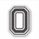 Vinheta número 0. Fonte da faculdade de esportes em preto. O alfabeto completo e os números 0-9 estão disponíveis.