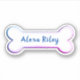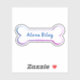 forma de osso branco de cão com borda e nome do arco-íris. Nome/texto pode ser editado.