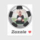 Um adesivo esportivo com uma foto dentro de uma bola de futebol. Personalize com uma imagem favorita.